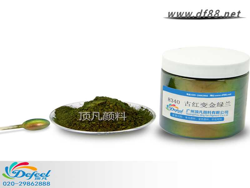 8340 古紅變金綠藍變色龍粉可應用于涂料、油墨、塑料各產業,產品之設計大多以室內(無紫外光之環境)與室外(有紫外光之環境)有顏色變化為訴求。